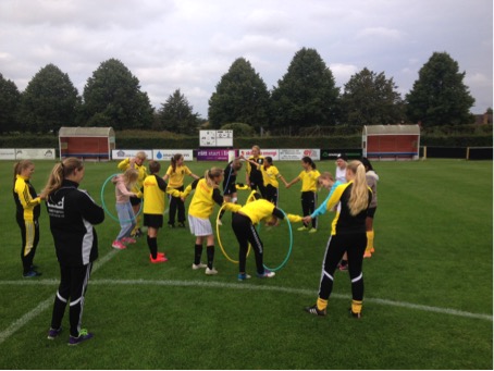 Under ledning av våra damseniorer fick tjejerna prova på samarbets- och fotbollsövningar. Därefter spelades fotbollsmatcher. Vi avslutade med att fika och heja på vårt damlag som spelade match mot Eskilsminne IF med en kvinnlig domartrio.
