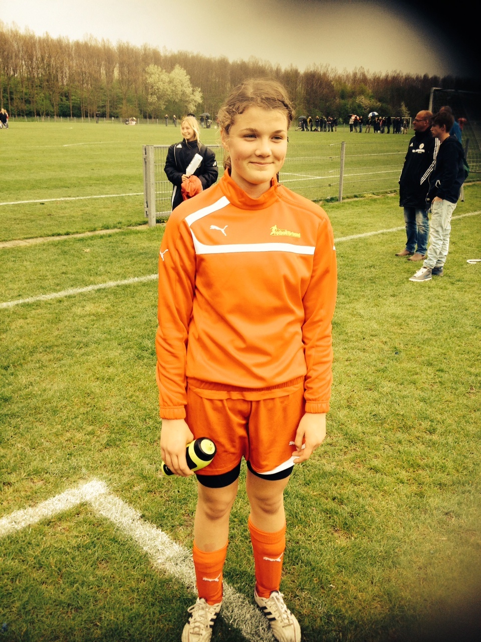 ... för Louise Reimertz i onsdagens match mot en nationell(?) kombination av danskor, födda 98/99. Matchen spelades på en fin gräsplan i ett stilla duggregn, i skuggan av Bröndby Stadion.