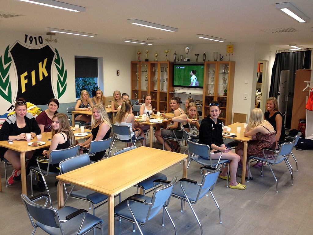 ... träningskväll i slutet av maj, följdes av mat, frukt och lite choklad i vår klubbstuga. En spännande final mellan Tyresö och Wolfsburg i Champions Leauge ackompanjerade.