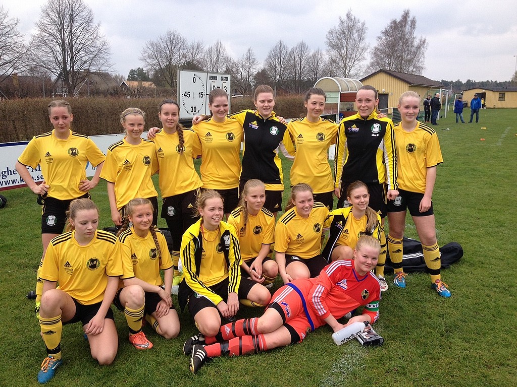 Förutom det skapar vi ett par riktigt heta lägen och framförallt minns man Elins rungande skott i underkanten av ribban (över linjen?), Willas distansskott som målvakten snyggt och behärskat tippar i ribban och över, samt Willas friläge, friskt uppvaktad.